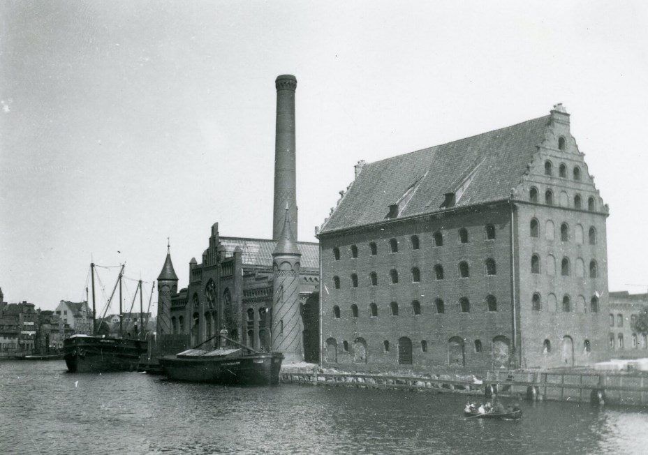 Першу електростанція на території Ґданська побудовали на острові “Олов’янка” в 1899 році. З роками його модернізували та розширювали. Його головна будівля з боку Мотлави вражала своїм декоративним неоготичним фасадом, який дуже орнаментований. Будівлі та обладнання були знищені під час авіаудару 25 березня 1945 року. Електростанція відновила роботу в серпні 1945 року, а в 1962 році. була перетворена на теплоелектростанцію.